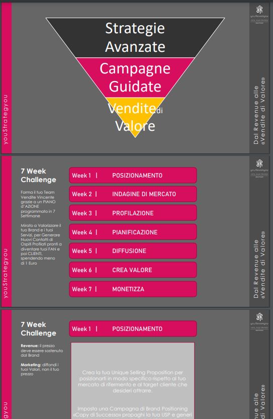 Sottoscrivendo materiale dell'Editore, riconosci e accetti espressamente che non stiamo offrendo in alcun caso promesse, suggerimenti, proiezioni, rappresentazioni o garanzie di alcun genere in merito a prospettive di lucro future o guadagni in relazione al tuo acquisto di prodotti youRevenyou SRL e/o servizi, e che non abbiamo autorizzato alcuna proiezione, promessa o rappresentazione da parte di soggetti terzi, interni o esterni all'azienda.